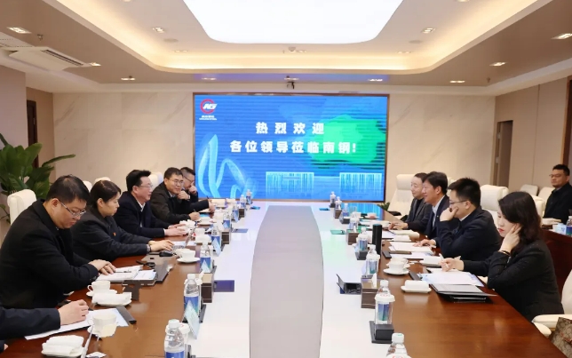 3月6日,中國鋼研黨委常委、副總經理郝曉東帶隊赴南京鋼鐵集團開展專題調研。南京市工信局副局長代吉上,南京鋼鐵集團黨委書記、董事長黃一新,黨委副書記王芳,副總裁譙明亮參加座談。